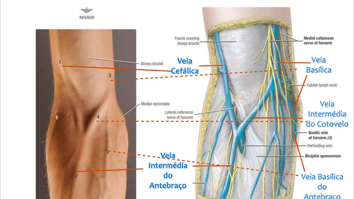 Desenhe a fossa cubital na prancha. Coloque os detalhes e rotule (ponha os nomes – os que estão em azul somente -). Use lápis de cor para pintar.